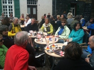 Weiter ging es dann zum Haus Scheppen, in Kupferdreh, wo wir ausgiebig bei diversen Getränken die feilgebotene Currywurst-Pommes und Salate goutierten.
