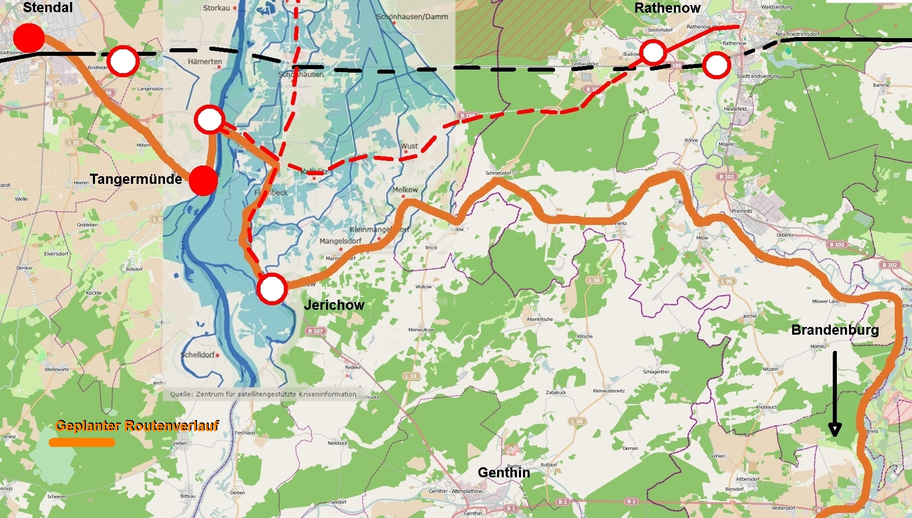 Die überschwemmten Gebiete bei Fischbeck machen uns sorgen. Würden wir heute fahren, so könnten wir nicht die zweite Etappe Tangermünde – Brandenburg durchführen. Zur Zeit fahren der von uns eingeplante IC nicht nach Stendal, da hinter Stendal die Strecke bis Rathenow gesperrt ist. Ebenfalls sind die Straßen auf der rechten Elbseite (bei Fischbeck und Jerichow) gesperrt. Momentan herrscht dort kein Durchkommen. Niemand kann sagen wie die Situation zum Tourbeginn aussieht.