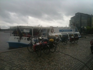 Der Morgen begann mit Regenschauer. Unser Schiff war noch nicht da, aber im Nachbarschiff konnten wir uns unterstellen.