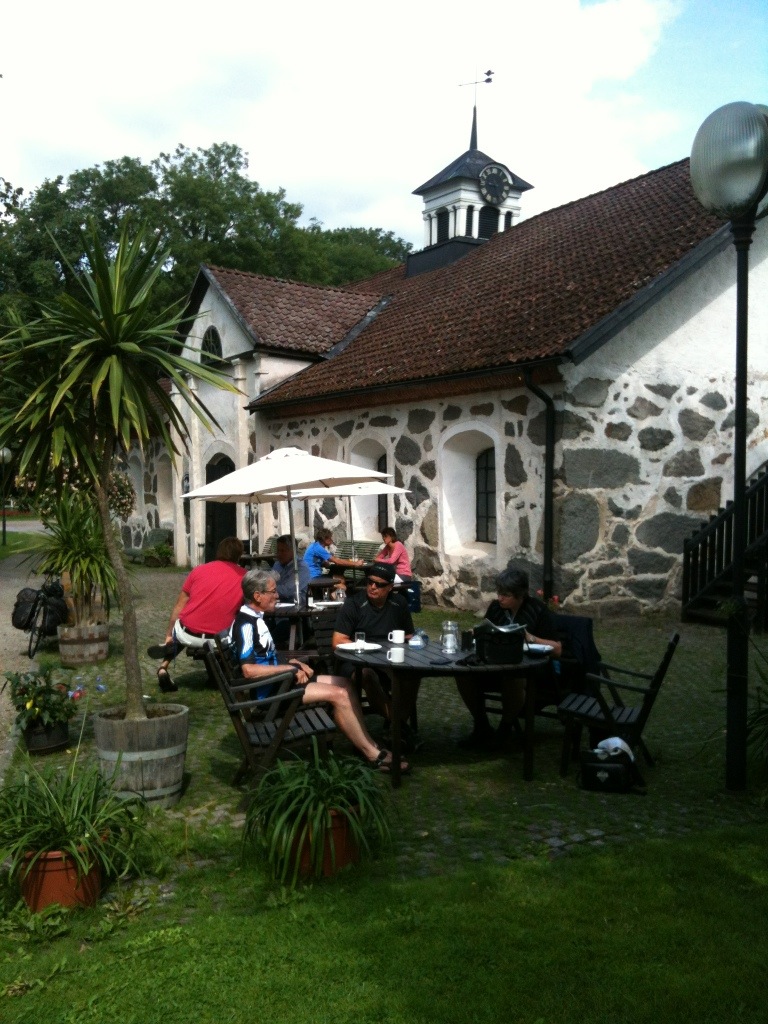 Nach einer schönen Tour quer durch die Seenlandschaft am Åsnen sitzen wir in Huseby Bruk im Café und lassen es uns gut gehen.