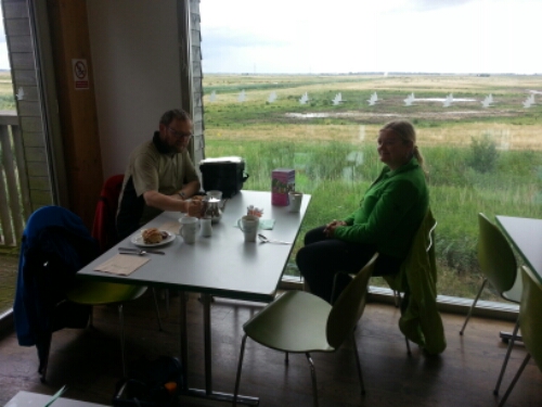 Eine Art Station Natur und Umwelt mit Schwerpunkt Ornithologie. Dort gab es unsere erhoffte Pause mit Kaffee, Tee, Sandwiches und Scones. Außerdem war es dort trocken und warm 😉