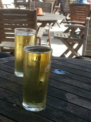 Ganz früh um halb Elf verließen wir unser Quartier. Nach anspruchsvollen 15 km mussten wir Mittagspause machen. In Bures am River Stour gab es ein gutes Mittagsmenü mit den obligatorischen randvollen Gläsern.