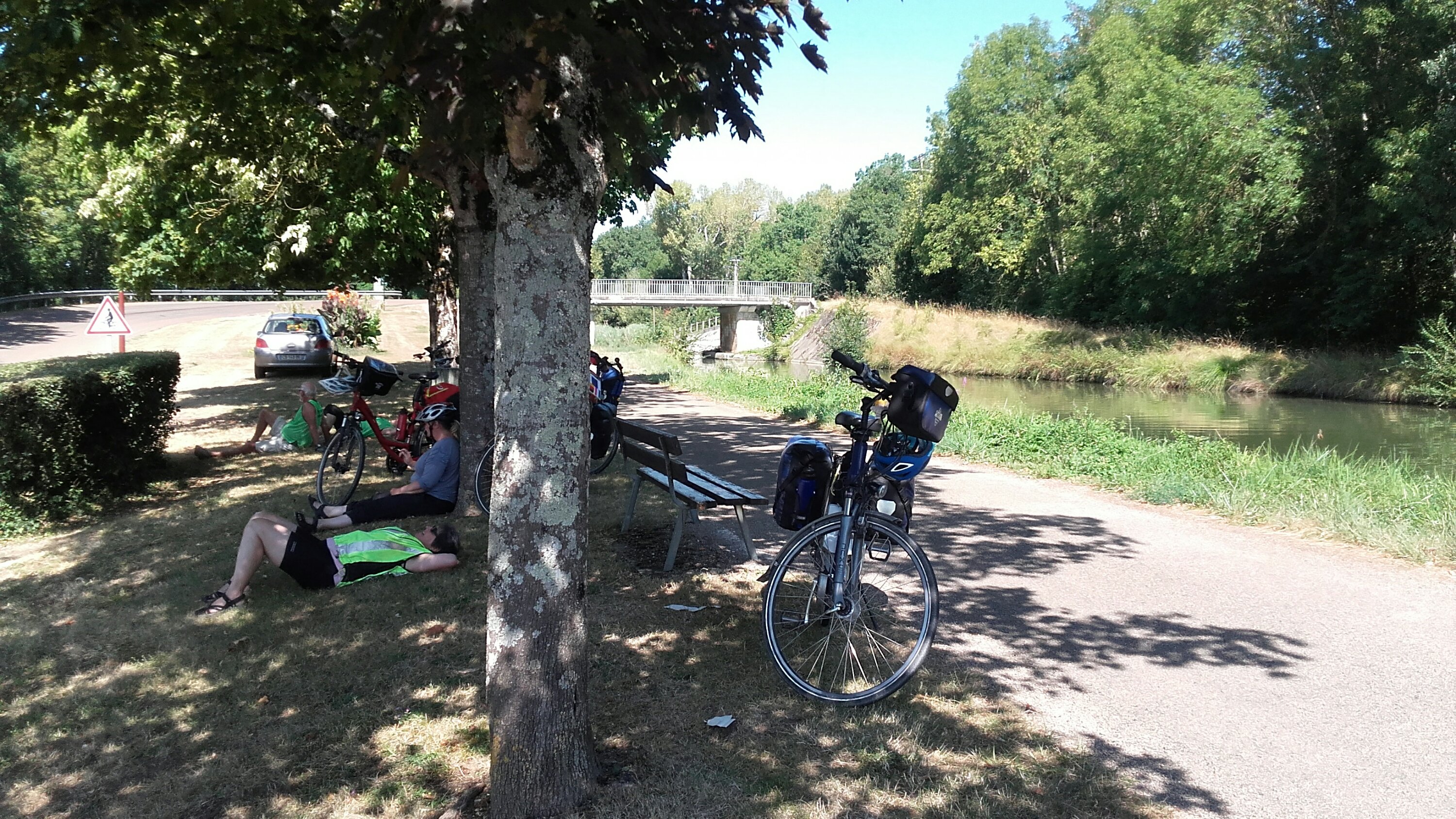 War ja nur ein leichter Chablis. Da wir anschließend nur am Kanal lang sind, ging das gut. Gottseidank hatten wir dann keine doofen Schotterstrecken mehr. Nachziehen mussten wir einen Sattel, ansonsten gibt es morgen zum Start eine Runde Kettenspray.