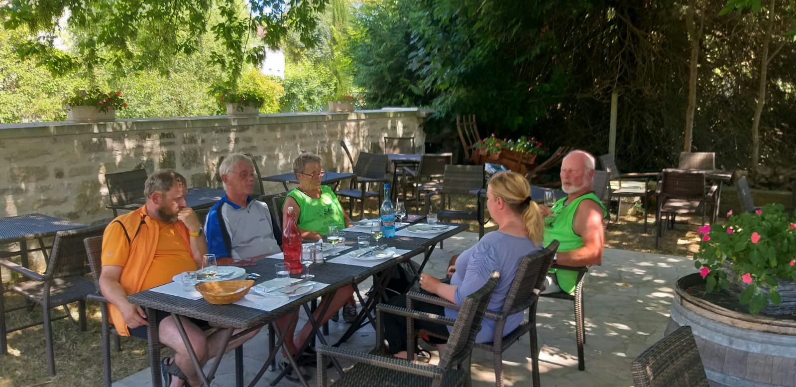Das Abendmenü war gut (bald habe ich das Schlachtgewicht erreicht) und die Nacht sehr warm aber ruhig. Wir sind dann zurück zum Kanal. Dort gibt es gut zu fahrende Strecken aber auch sehr schlechte Schotterwege mit fiesen dicken Brocken. Wer das fabriziert hat, den sollte man die Brocken kleinklopfen lassen. Von Hand mit einem 25 g Hammer.