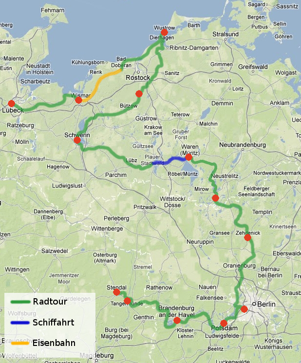 - Wuppertal – Stendal – Tangermünde (14 km) Anfahrt bis Stendal mit der Eisenbahn